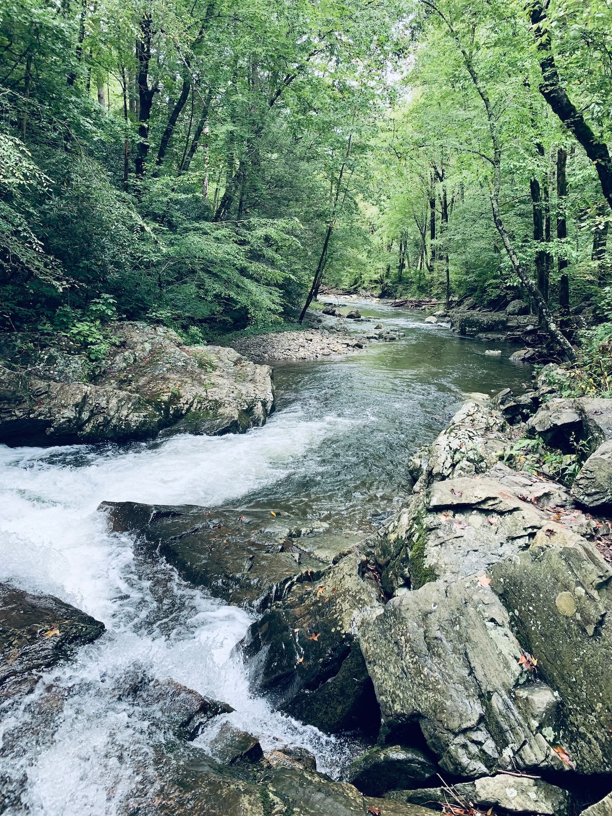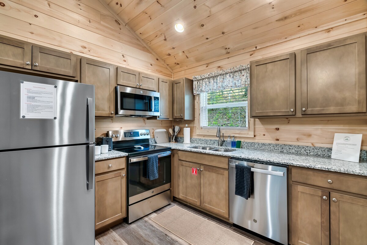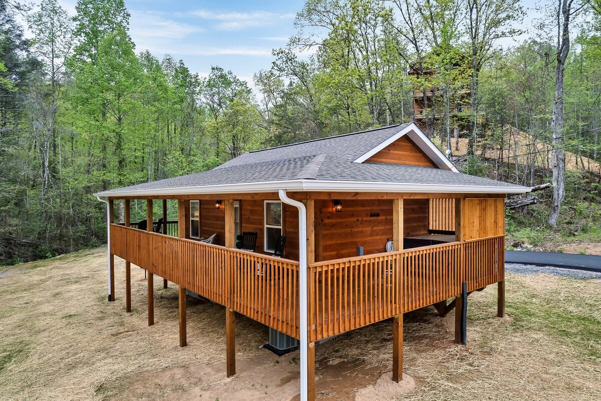 Welcome to summer in the Smokies! Bluff Creek Cabin is a charming 1 bedroom, 1 bath cabin that offers a secluded feeling, yet close to the parkway and all the major attractions, restaurants and hiking trails. This is a great cabin for honeymooners or a couples retreat. Enjoy morning coffee out on the wrap around porch, while listening to nature, then relax in the hot tub after a day of activities!