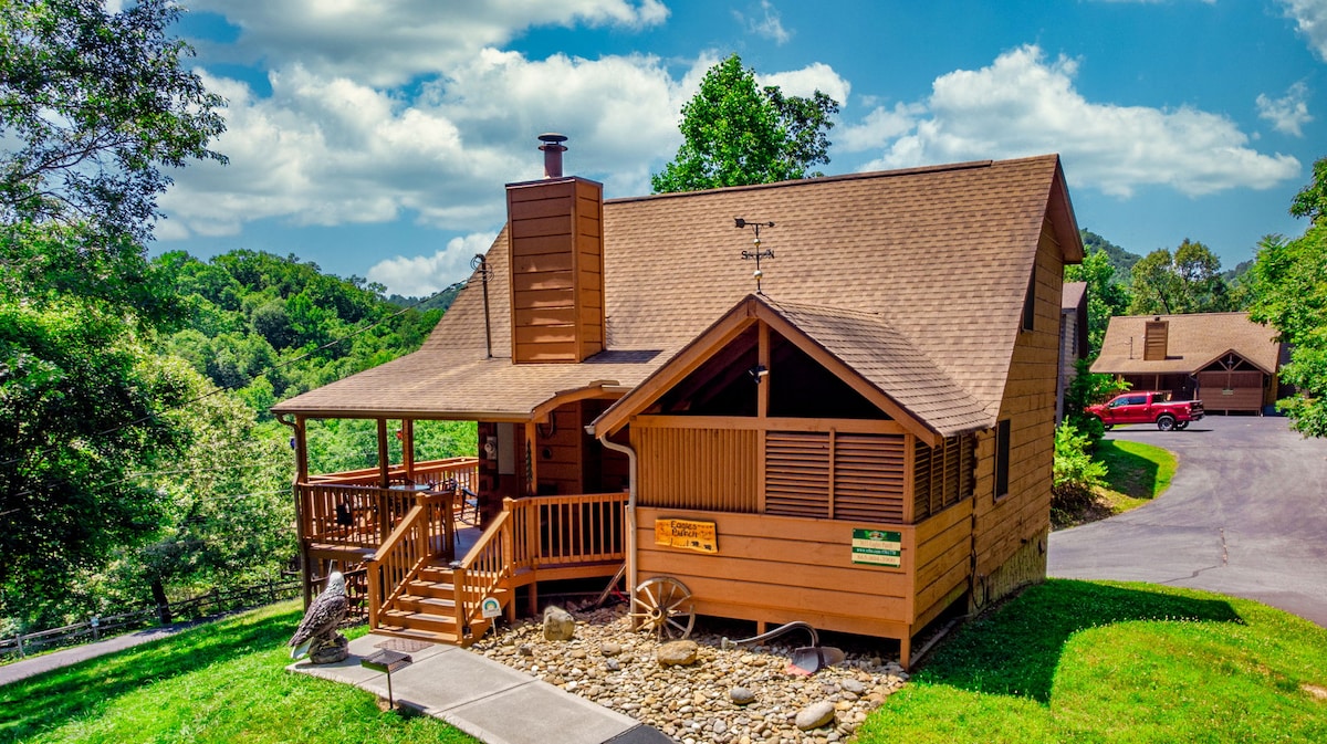 SeviervilleA charming 2 bedroom (loft has a king bed. No door) and 2 full bath cabin with great views. Eagles Purch is the perfect size for romantic getaways or a family retreat. You'll feel as though you're off the beaten path, yet enjoy easy access to all attractions. Enjoy the games we have or grill out on the expanded deck to enjoy the great mountain views. Then relax and unwind in the hot tub. Easy roads!